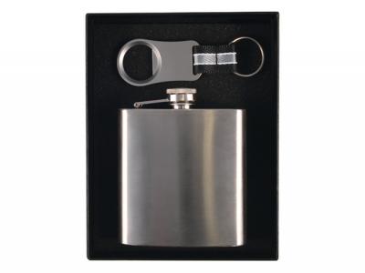 - Superior gift set of stainless steel hip flask and aluminium bottle opener with 30mm split ring keytag.
