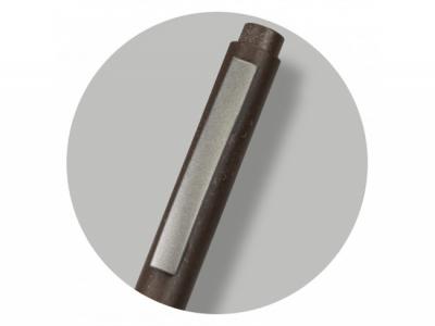 Introducing our eco-conscious retractable ballpoint pen, featuring a unique barrel made from a blend of polypropylene and coffee ground. It utilizes a large volume refill with 1200m of black German manufactured Dokumental ink and is complemented by matte gunmetal trim. The pen can be presented in an optional pen sleeve or gift box.