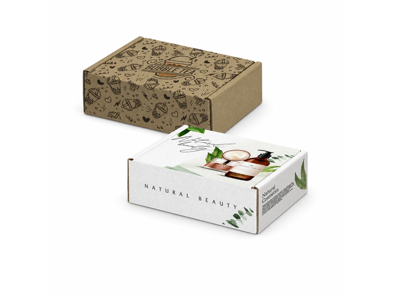 Experience the utmost professionalism with our custom presentation box, meticulously crafted from robust 1.5mm e-flute corrugated cardboard to ensure dependable protection throughout transit. This box is an ideal choice for both gifting purposes and establishing a strong brand presence. Boasting a user-friendly hinged lid, every panel of the box can be personalized with CMYK digital print, allowing for a unique and eye-catching design. For your convenience, the box is supplied flat-packed, enabling easy shipping and storage, while its self-locking mechanism guarantees effortless assembly. When fully constructed, the internal dimensions measure 125mm x 97mm x 47mm (LxWxH), providing ample space for your valuable items.