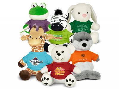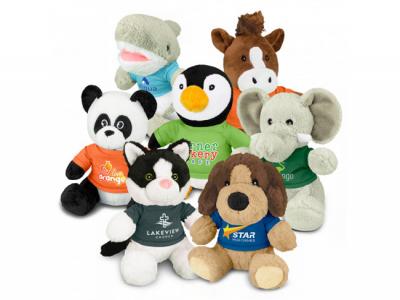 Incorporate branded assorted plush toy animals in your next promotional campaign