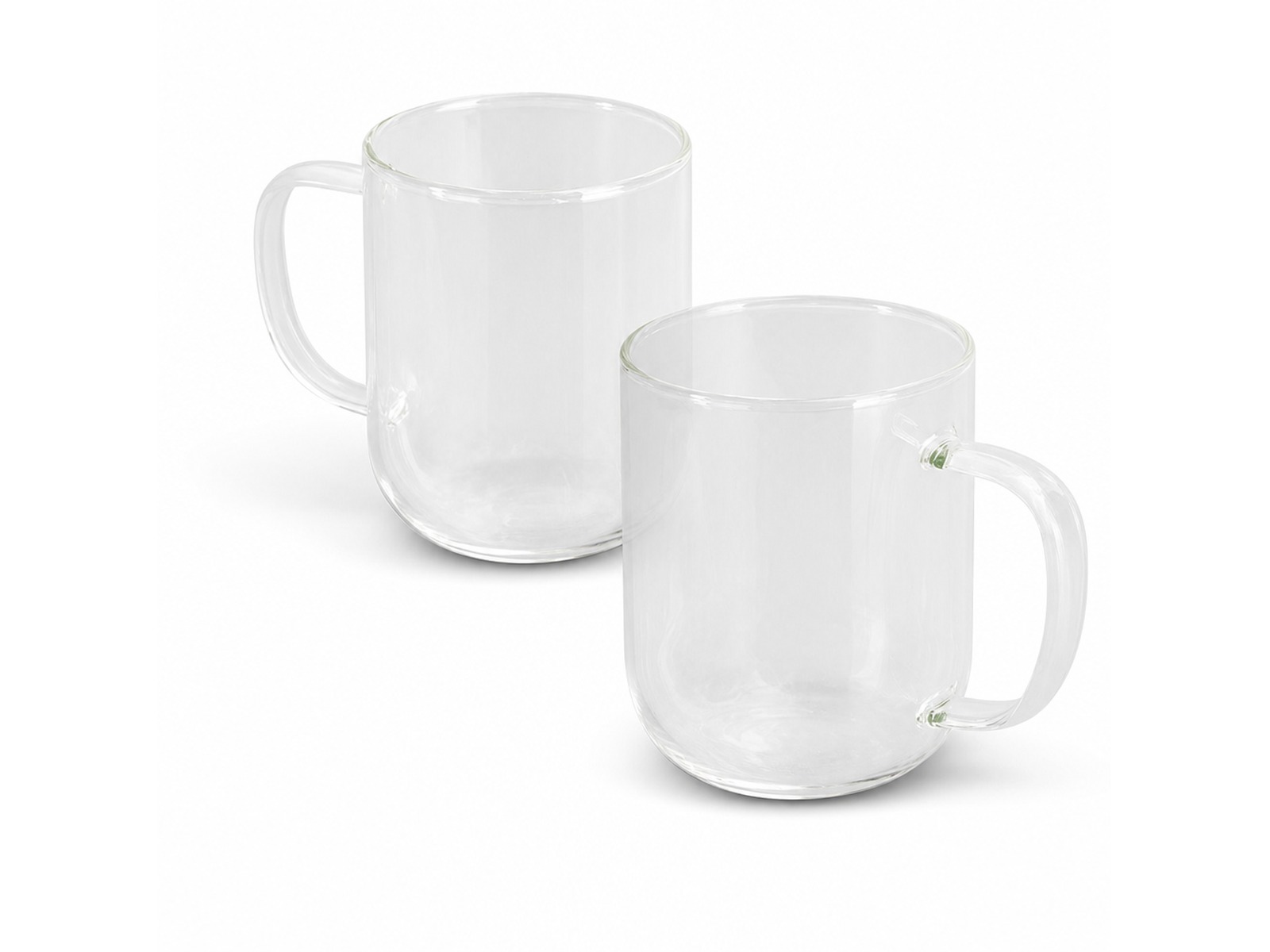 Our custom made 350ml Borosilicate Glass Mugs can be produced from a minimum quantity of 50 pieces.