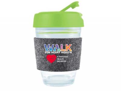 Incorporate branded 320ml glass reusable coffee cups in your next promotional campaign