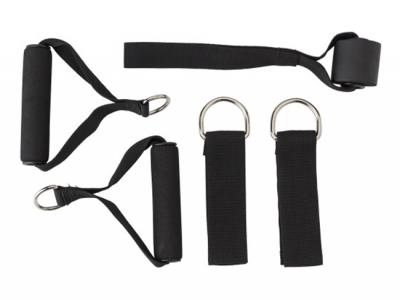 A fitness set contained within a polyester (210D) bag. It comprises five latex fitness resistance bands, each offering different levels of resistance. You can utilize the carabiners on the nylon (600D) straps to affix handles or other attachments for various exercises.