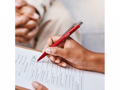 Incorporate branded pens (blue ink) in your next promotional campaign