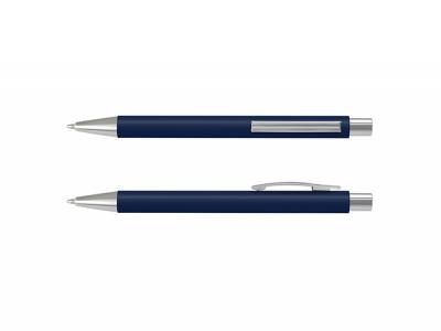 A retractable plastic ballpoint pen featuring a smooth soft-touch matte exterior and shiny chrome accents. It comes equipped with a black refill that contains 1200 meters of high-quality Dokumental ink manufactured in Germany.