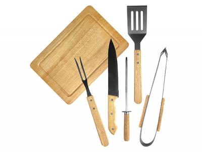 The BBQ tools themselves are constructed from professional-grade 420 stainless steel, ensuring their longevity and effortless cleaning. This comprehensive Davis BBQ set includes essential items such as a chopping knife, sharpening bar, spatula, tongs, fork, and a rubber wood cutting board.