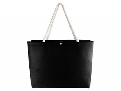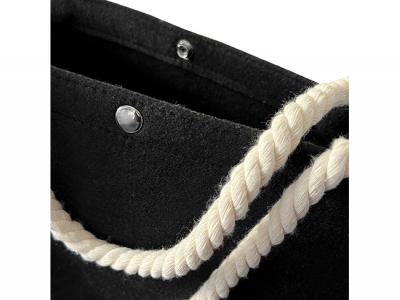 Custom felt shopping bags crafted from high-quality 3mm thick black felt fabric. This durable, moisture-repellent, and heat-insulating material ensures your belongings stay protected. The smart design features two comfortable, thick rope-shaped handles and a top button closure. It's the perfect promotional bag for corporate events, adding a touch of sophistication to your brand.