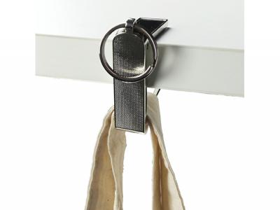 Discover the convenience of our multi-function key ring, designed to be a mobile stand and bag hanger. Crafted from high-quality zinc alloy with a glossy chromed finish, this key ring boasts a slim and modern design. It features a mirror-finished square branding area for corporate logos and information, making it a valuable tool for holding mobile phones and bags anytime, anywhere. Ideal as a promotional product for office staff, students, and event giveaways. Packageed in a Black gift box.