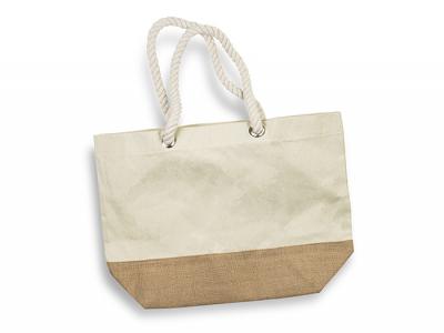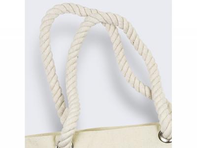 This premium Large Custom beach bag with Chord handle is large and holds up to 25 L. The Beach bag is designed for durability and style. Crafted from sturdy 300gsm cotton canvas, this tote boasts a hard-wearing 290gsm natural jute gusset for added strength. It features strong woven rope handles and eyelets, making it not only stylish but also a highly functional shopping companion. It's the perfect blend of fashion and practicality.