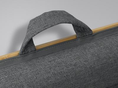 Crafted from eco-friendly bamboo, this custom lap desk seamlessly blends comfort and functionality. This Lap Desk easily accommodates laptops up to 16 inches or serves as an ideal platform for a compatible tablet with a keyboard. Boasting a soft cushioned polyester base and a practical carry handle adorned with a stylish heather finish, this lap desk ensures both comfort and portability.