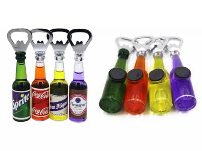 Custom liquid filled 3D Bottle Openers in the shape of a bottle with magnetic backing are great souvenirs and gifts to promote your brand & label. Promotional 3D Bottle Openers are great for bars and beverage companies.