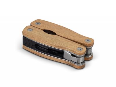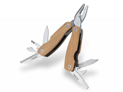 Introducing our compact 9-function multi-tools, designed for everyday convenience. Unfold to reveal spring-loaded pliers and eight essential tools: a knife, can opener, saw, screwdrivers (flat, slotted, and Phillips), bottle opener, and nail file. With stylish Beech wood handles, these custom tools are both functional and fashionable. Complete with a carry pouch featuring Velcro closure and belt loop for easy transport.