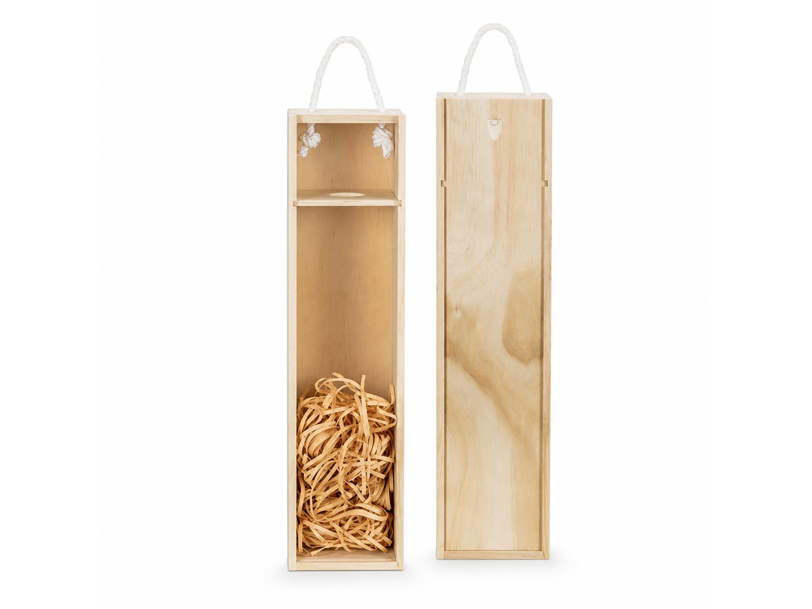 Meticulously fashioned from natural pine wood. This stunning box boasts a sliding lid, adding a touch of sophistication to any wine presentation.