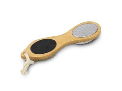 Complete foot care with our versatile 4-in-1 custom pedicure tools featuring a natural bamboo handle. This all-inclusive tool includes a foot brush, pumice stone, file, and callous remover for optimal results. Conveniently hang it in your shower with the rope handle. Packaged in environmentally-friendly materials with NATURA branding, it's a sustainable choice for your self-care routine.