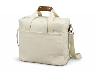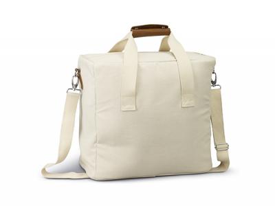 Our spacious and chic 26L custom cooler bags features a PE foam insulation and a water-resistant PEVA inner liner, it keeps contents fresh for longer. These Branded Cooler Bags are crafted from natural 100% 450gsm cotton canvas with elegant leather-look PU accents, it exudes style. Equipped with cotton carry handles, a PU cuff, and a removable, adjustable shoulder strap for convenience. Additional highlights include a zippered top closure, piping details for structural support, and a large slip pocket.