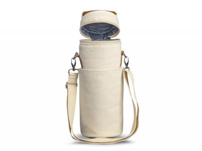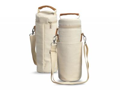 Transport your favourite wine in style with our custom cooler bags, designed to accommodate one standard wine bottle. These custom cooler bags boasts PE foam insulation and a water-resistant PEVA inner liner, while its exterior is crafted from natural 100% 450gsm cotton canvas with luxurious leather-look PU accents. Complete with a webbed cotton carry handle, a PU cuff, and a removable, adjustable shoulder strap for added convenience. Additional features include a zippered top closure, piping details for structural integrity, and a spacious slip pocket.