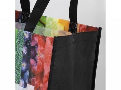 We can have your logo branded on these corporate PET Tote Bags (19L 80gsm ) in Full Colour Digital Print. A setup fee of US$129.00 will apply to make the film.