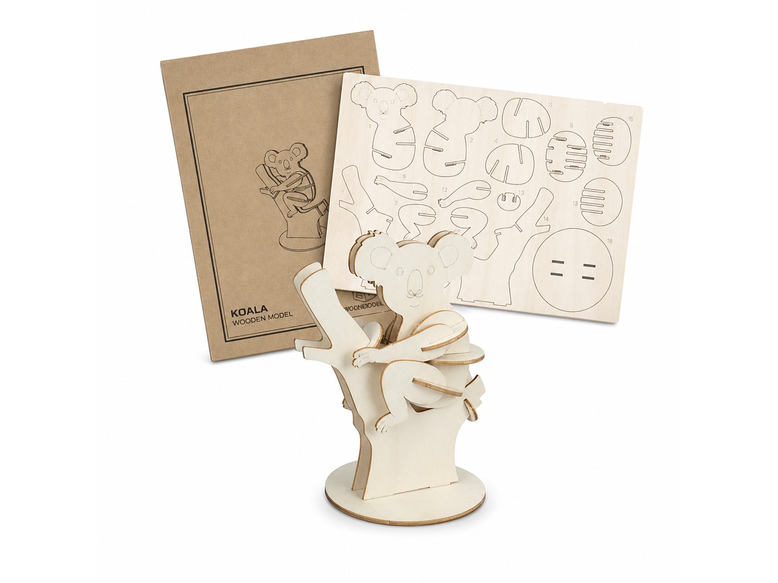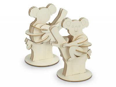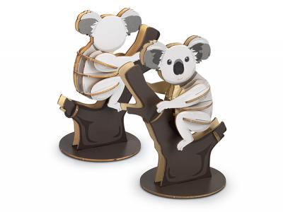 Custom wooden model Koalas are expertly laser cut from lightweight and strong Basswood, ensuring precise and intricate details. The interlocking design allows for easy, tool-free assembly, making it accessible and enjoyable for all ages. The model comes in a brandable cardboard sleeve with clear assembly instructions, providing a seamless and engaging crafting experience. Additionally, it can be customized with your brand on the natural Basswood material or by using the default digital template to add your brand's colours, making it an ideal promotional product or gift.