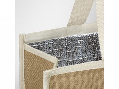 - Large 13L cooler tote bag made from natural jute with cotton accents