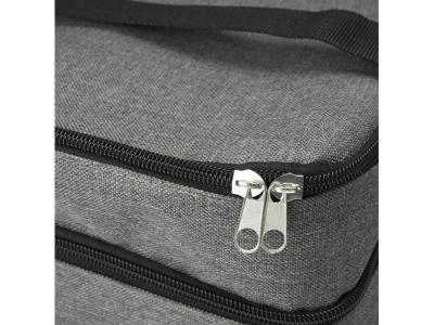 This RPET 2 Compartment Cooler Bag is an eco-friendly and durable solution for keeping food and beverages cool. Made from grey RPET polyester 600D with PEVA lining and PE foam, this custom cooler bag features two separate compartments for organized storage. With a 14L capacity, an adjustable black polyester carry strap, and a front pocket for small items, it's perfect for a variety of occasions. The black zipper closure and sustainable RPET tag add a stylish and responsible touch.