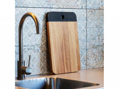 - Stunning acacia wood serving board with black painted detail
