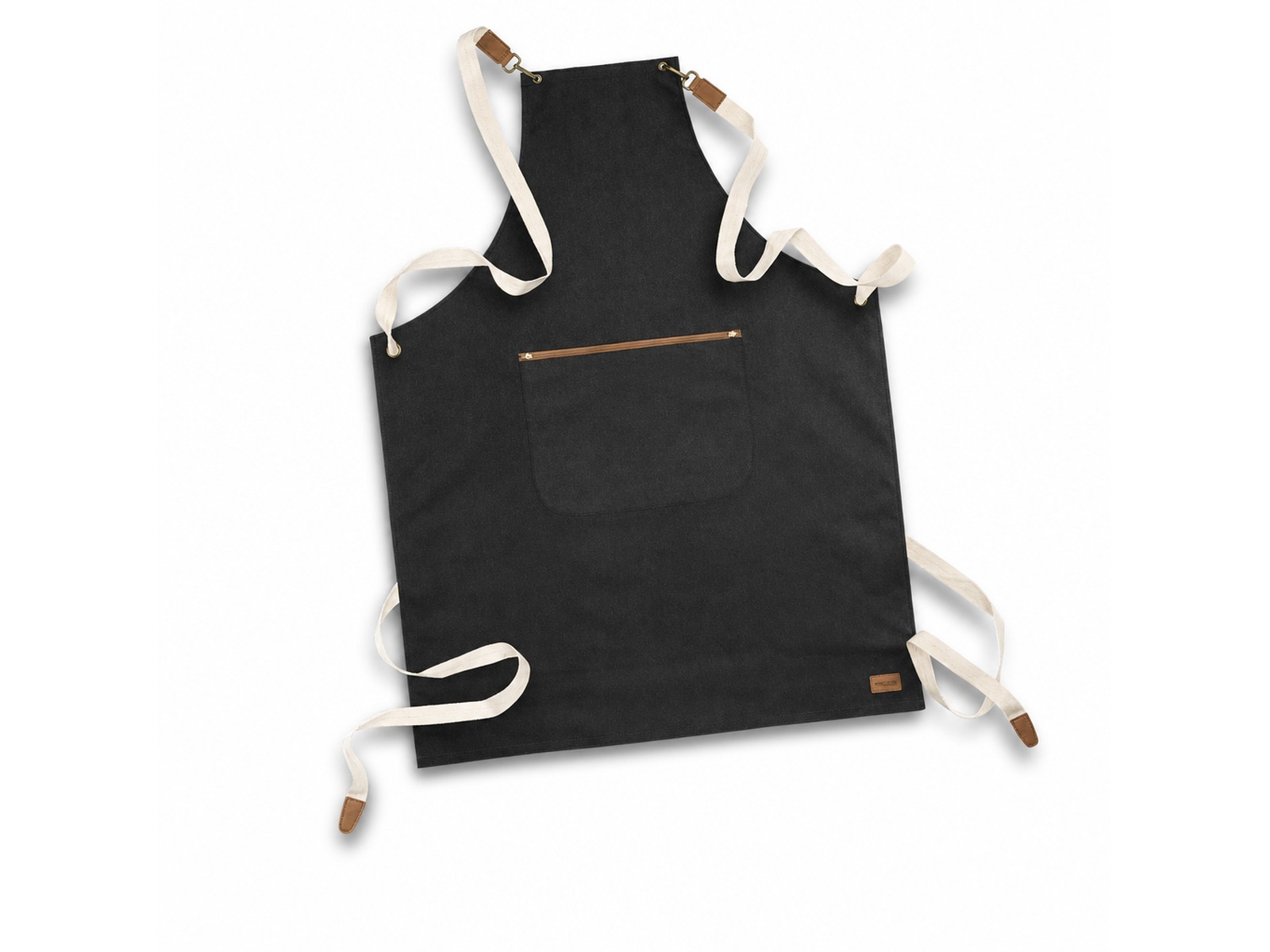 The Keepsake Canvas Apron is made from durable 300gsm cotton canvas in a stylish washed black finish. It features a leather-look PU front pocket and trim, plus gunmetal rivets for attaching and looping natural cotton straps. The adjustable fit and subtle Keepsake woven label combine style and function. Each apron comes with a Keepsake branded hangtag, making it a standout choice for hospitality, events, or kitchen gifts.