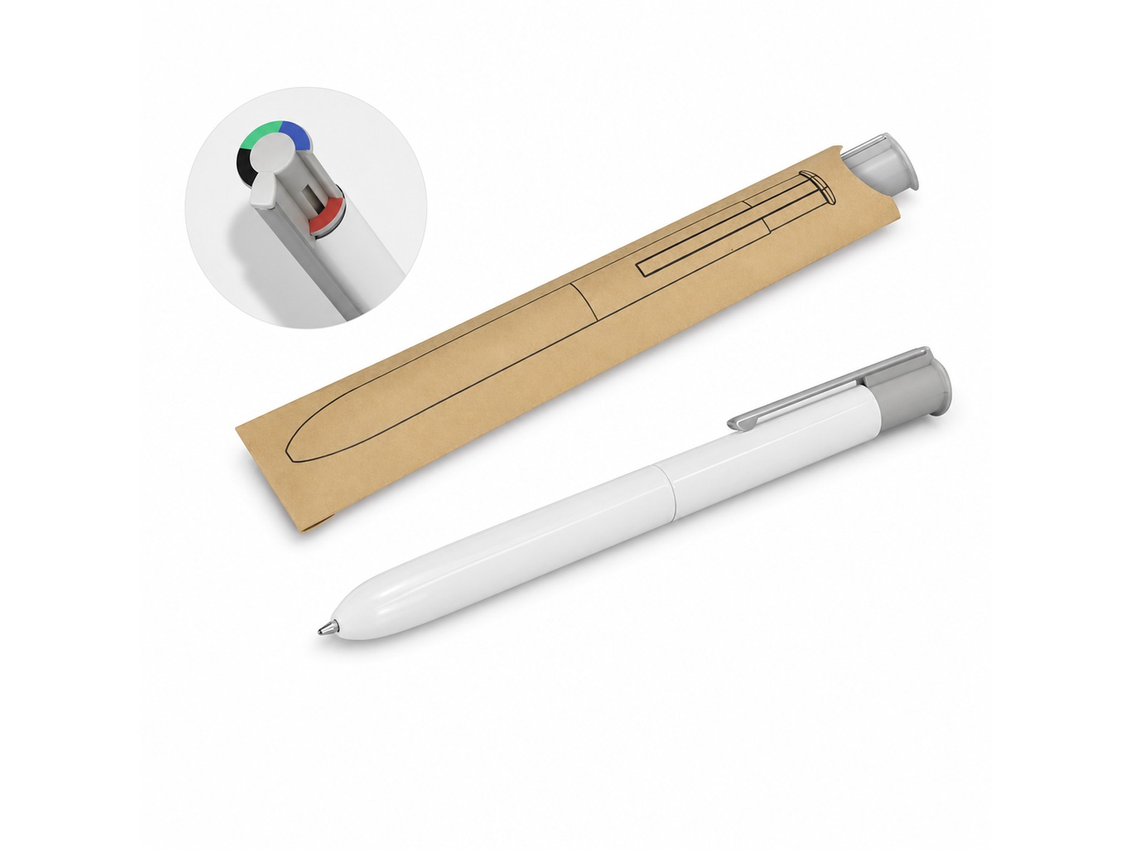 - Four-colour retractable ballpoint pen (black, blue, red, green)