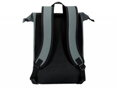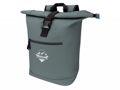 Branded recycled roll-top laptop backpacks in 18L capacity — ideal for corporate gifts, team events, and eco-conscious promotional giveaways.