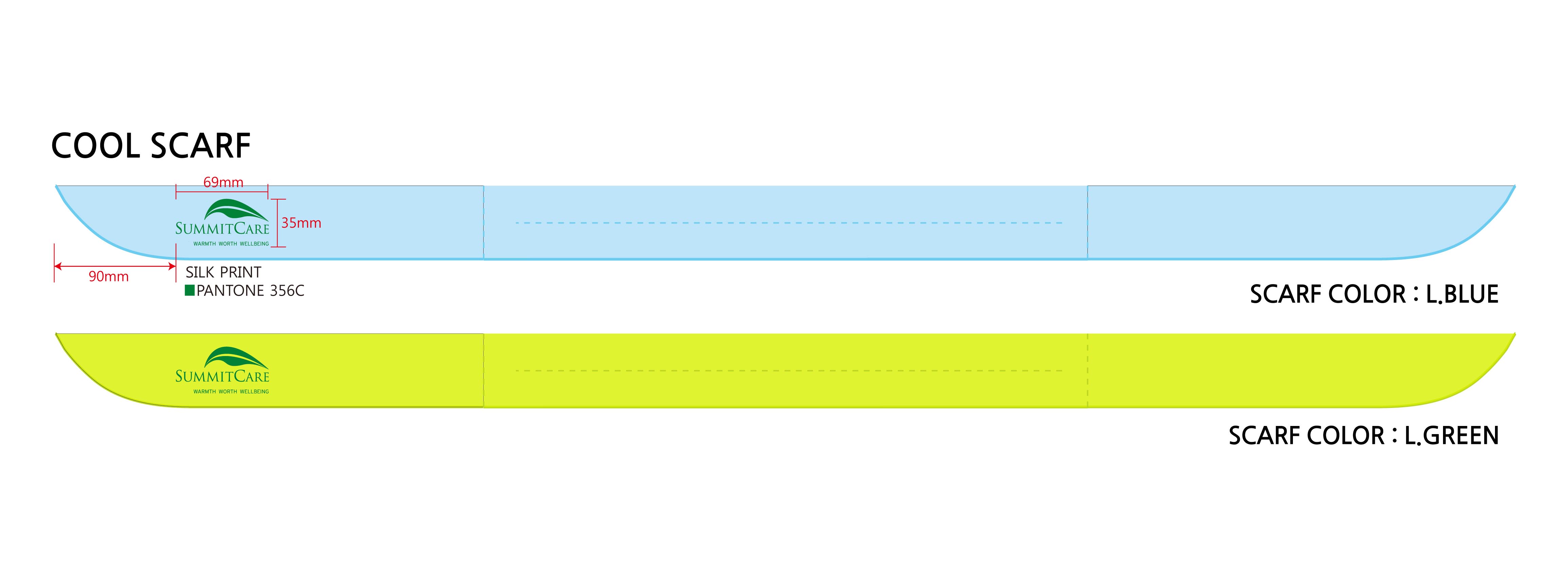 We can have your logo branded on these corporate Cooling Scarves in 1 Colour Silkscreen Print. A setup fee of US$129.00 will apply to make the film.