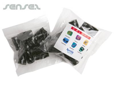 Promotional Licorice is packed in clear polybags with custom printed stickers. Promotional Licorice In Polybags are a fun and affordable addition to any creative marketing or advertising campaign, and they can easily be used to tap into any target audience, from kids to oldies, everyone will love the sweet taste of your brand! Promotional Licorice In Polybags are particularly effective at boosting customer morale, sales and customer loyalty.
