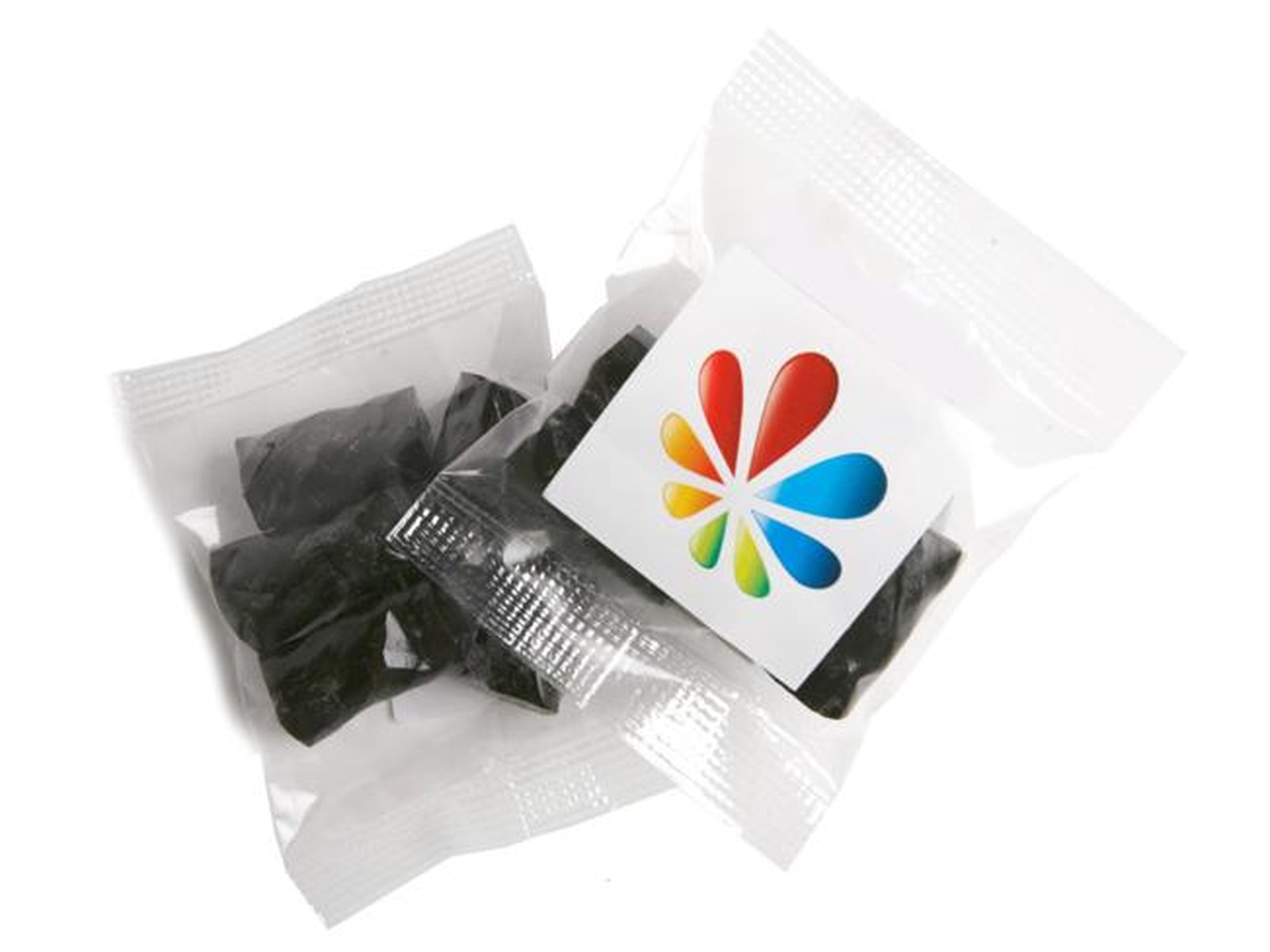 We can have your logo branded on these corporate Licorice In Polybags in 1 Colour Silkscreen Print. A setup fee of US$114.00 will apply to make the film.