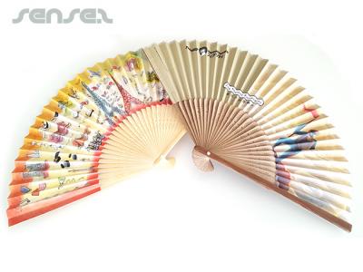 Beautiful paper custom fan with detailed wooden handle adding some refined value and tradition to this promotional gift. Ideal for events to keep the heat away and summer promotions. The custom fans are also available in a plastic or plain wooden handle at same cost. These intricately made bamboo fans feel delicate and refined and will help keep your customers cool in summer. Custom Folding Fans are ideal for outdoor events and travel promotions.