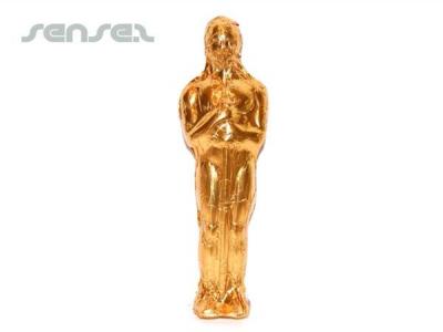 Custom-shaped chocolate wrapped in foil with optional printed sticker. Your choice of size and shape and foil colour cover. Like this custom made Oscar Statue in foil. Cost shown is based on a LARGE size oscar statue based on Approx 210mm x 40mm diameter and 60grms. Kids and adults – everyone loves chocolates! These high-quality promotional treats can be used in a variety of promotions and, with your artwork on them; they will be a tasty, yet a powerful reminder of you. A delicious way for people to get their mouth around your brand.