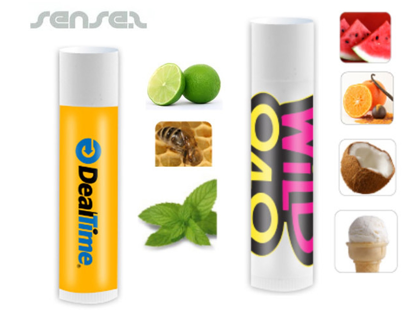 Custom full colour digital label printed Lip balms with range of flavours. Moisturizing lip Balm. This product is Sunscreen SPF protectant. Available in a 4.25 gram tube. Custom Lip balm helps in the healing and prevention of dry, chapped, sun and wind burned lips. Full colour digital label is placed directly on the tube. Perfect promo tool, if your product is of a certain flavour.
