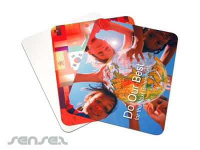 The mouse mats are cost effective and versatile. They can be produced as a round or rectangular Mouse Pad. The rectangular shaped mouse mat can also double up to protect your laptop / notebook by inserting it between the laptop before closing. the size for the rectangular mouse pad is 230 x 180 x 1mm