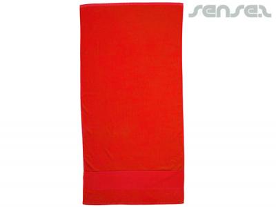 Your promotional velour terry towels can be silk screen printed in 1 or more colours. Costs shown include a 1 colour logo print on your custom branded velour terry towels. We can print more than 1 colour, however it incurs extra costs. We can achieve a perfect PMS colour match for the print.