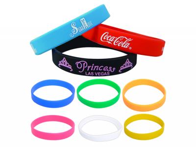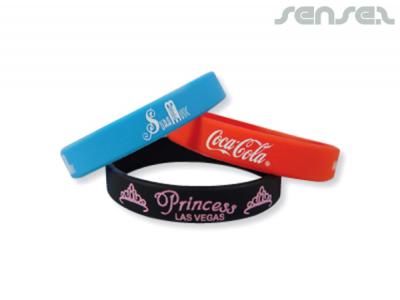 We can have your logo branded on these corporate Silicone Wristbands (Fast Turnaround) in 1 Colour Silkscreen Print. A setup fee of US$50.00 will apply to make the film.