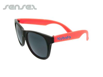 These Retro style adult sunglasses reminiscent of the 80's have UV 400 Lenses for protection against ultraviolet rays. Price includes imprint on one arm only. Ideal for surf events and beach themed marketing campaigns. These glasses are available at small quantities and can be produced and delivered super quickly.