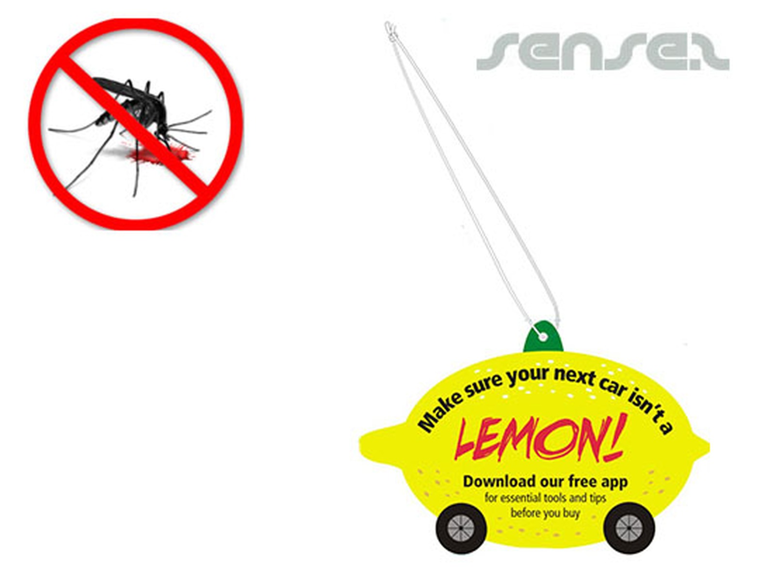 Citronella car air fresheners that keep mozzies away! have your own logo turned into a custom made car air freshener doused in citronella oil to keep moskitos away! these custom made moskito repellent car air fresheners are a great way of spreading your brand message whilst keeping your customers safe. Also great for charity fund raisers and anti malaria campaigns.