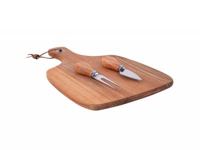 Create a bit of wine region atmosphere wherever you are with our Personalised Cheese Boards & Knife Sets! This elegant Personalised Cheese Board set features a rustic Cheeseboard and 2 piece knife set. The robust Cheeseboard and knife handles are both made from acacia wood. Recessed into cardboard gift box making this Custom Cheese Board and knives set a complete cheese lovers gift.