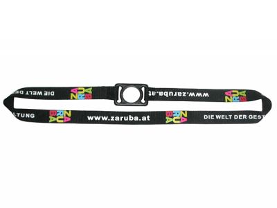 Custom printed lanyard with bottle holder attachment for ease of carrying around water-bottles at conferences, music events, sports events and other promotional campaigns. These practical water holding lanyards free up your hands and enable your customers to browse your products, dance or run instead.
