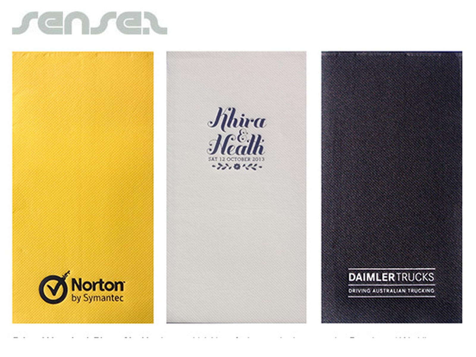 We can have your logo branded on these corporate Rectangular Dinner Napkins in 1 Colour Pad Print. A setup fee of US$129.00 will apply to make the film.