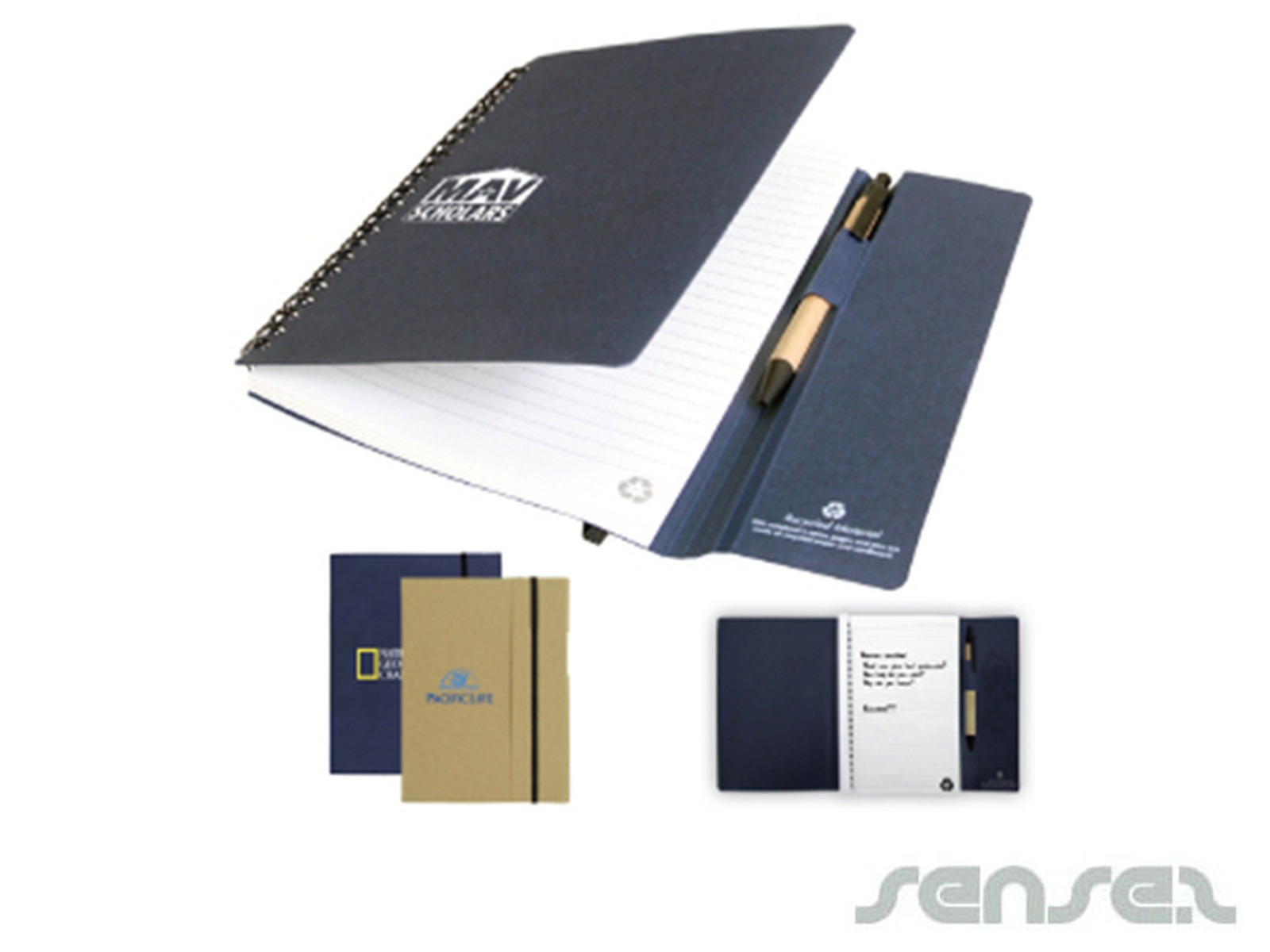 Personalize your notebook & pen sets (a5) or custom design recycled notebooks for your marketing campaign.