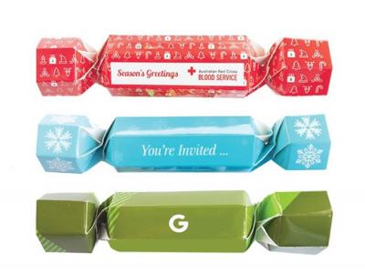 Christmas Crackers with custom logo printed sticker are ideal for corporate christmas presents. Christmas bon bons are an ideal promotional Christmas giveaway for your corporate promotions. Promotional Christmas Crackers are ideal for staff christmas gifts, Xmas hampers or customer Xmas wishes. Branded Christmas Crackers are great seasonal promotional christmas gifts which can be given out at any Christmas event!