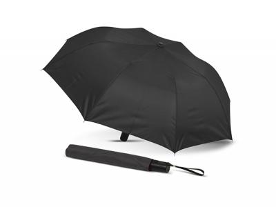 Cheap Compact Branded Umbrellas are an 8 panel bi-fold umbrella with automatic opening which folds down to a very compact 38cm when not in use. These branded umbrellas have a strong 190T showerproof polyester canopy with a matching carry sleeve and 52cm ribs. The eight rib frame is constructed from metal with a two stage telescopic metal shaft. Other features include a leather look hand grip, metal tips, a Velcro tie and a woven hand strap.