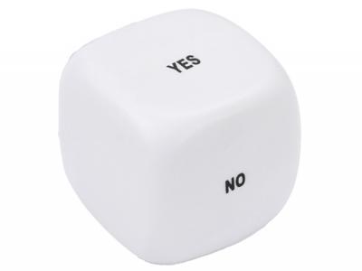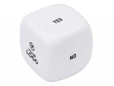 These promotional anti-stress dice are made from a PU foam material. Anti stress decision maker with one empty side for printing purposes.