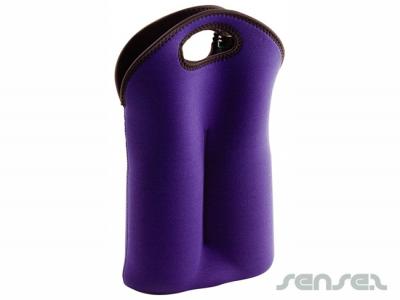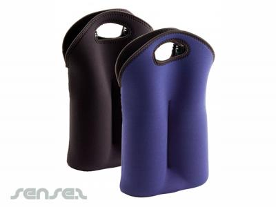 The Promotional Double Bottle Carriers are made from Black or Blue neoprene material, making them the most compact way to carry wine. The carriers look great with your logo printed on them, so why not match them with our Travel Wine Sets! Together they make the perfect Christmas or Birthday presents for your employees. The Double Bottle Carriers are also great as giveaways in bottle shops and wineries!