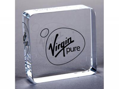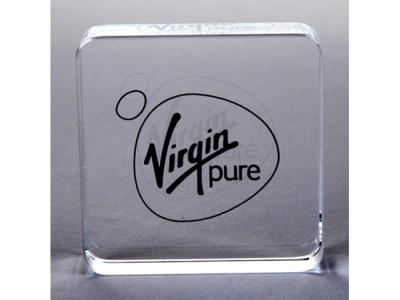 Your promotional square crystal paper weights can be silk screen printed in 1 or more colours. Costs shown include a 1 colour logo print on your custom branded square crystal paper weights. We can print more than 1 colour, however it incurs extra costs. We can achieve a perfect PMS colour match for the print.