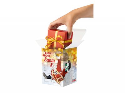 Flying high with promotion: This exceptional tower advent calendar convinces with five gigantic, individually printed advertising areas. Thanks to the delicious, irresistible mini Ritter SPORT brand chocolate bars, the Christmas period becomes a special pleasurable experience. Comprising of a FSC-certified solid board box, a compostable inlay and a 100% climate neutral production, you are going to give your customers a gift with plenty of sustainability at the same time.